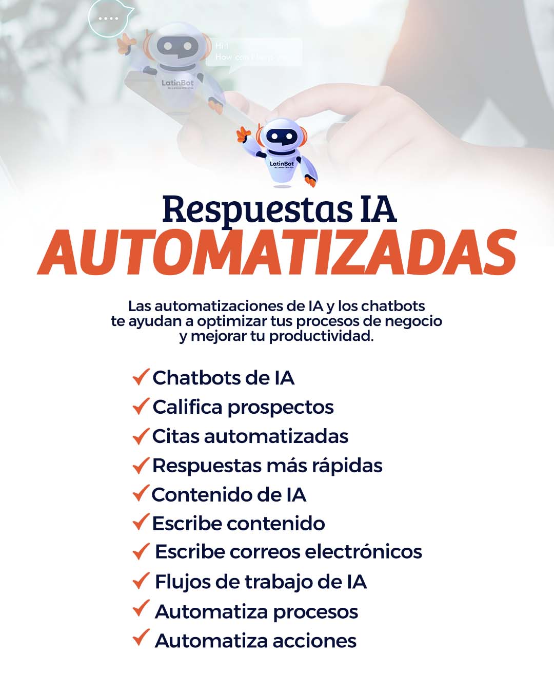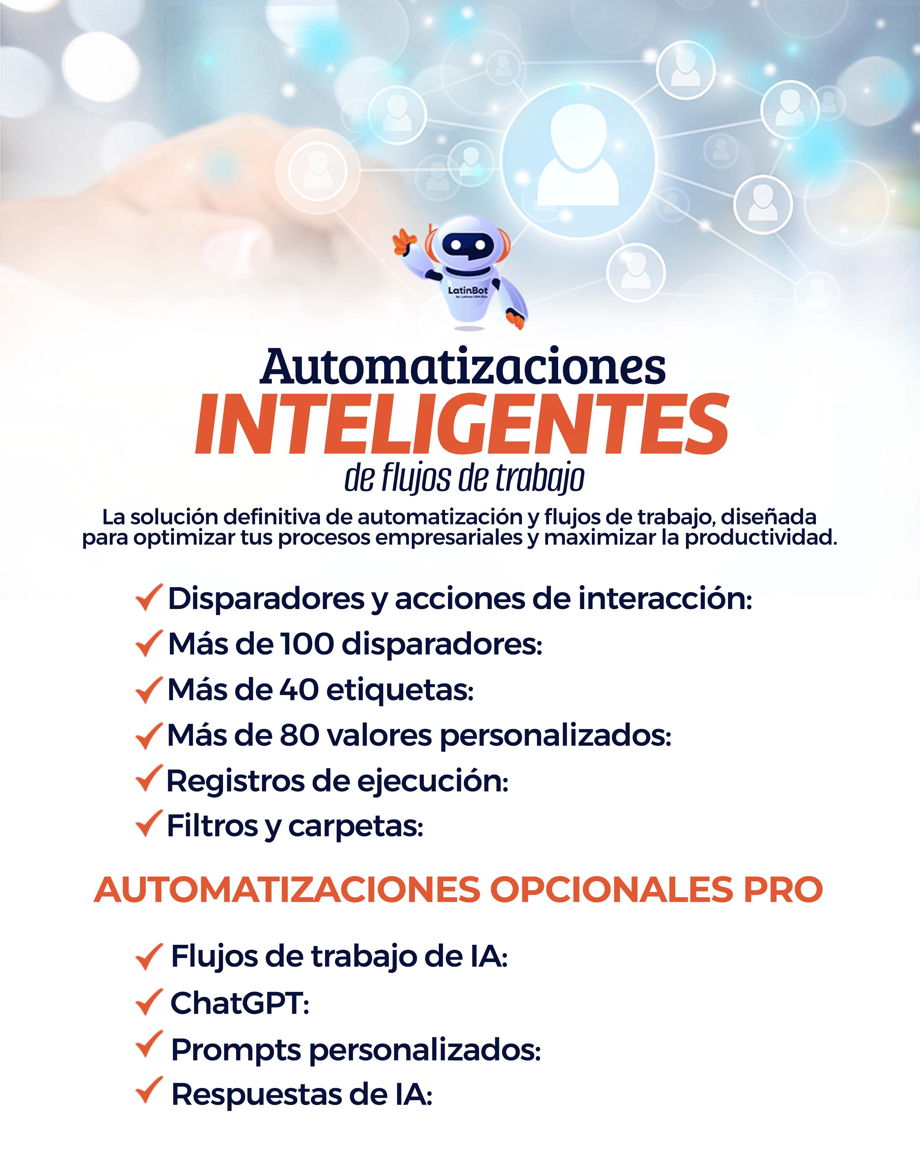 Latinos CRM Plus incluye funciones de IA que simplifican acciones repetitivas y de respuesta automática 24/7, ayudándote a optimizar la gestión de tus clientes sin esfuerzo adicional. Estas herramientas permiten que tu equipo se enfoque en tareas estratégicas mientras el sistema se encarga de mantener una comunicación constante y eficiente con tus clientes. Con estas automatizaciones, tendrás más tiempo para aprovechar oportunidades de venta y mejorar la productividad de tu negocio.
